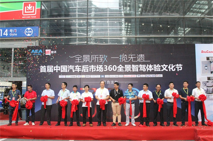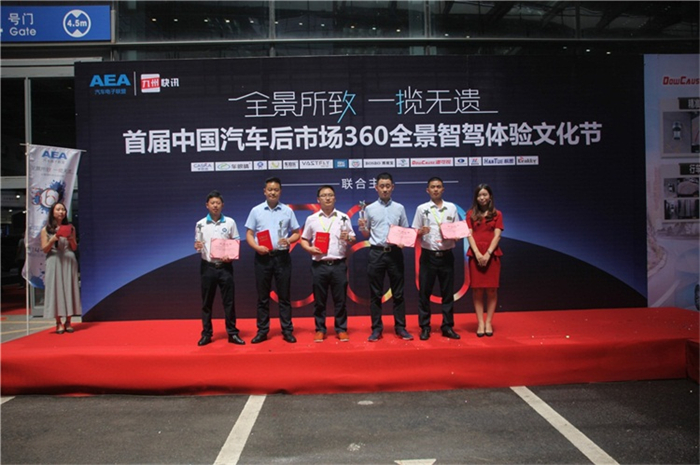在此次秋季展中還開展了“首屆中國汽車后市場360全景智駕體驗文化節(jié)”,深圳道可視科技有限公司劉經(jīng)理(左四)出席文化節(jié)開幕。