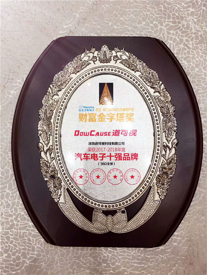 會議現場,在近千人的見證下,深圳道可視科技有限公司憑借強大的技術研發能力、穩定的產品性能和良好的售后服務,贏得了客戶的廣泛好評,榮獲第六屆財富金字塔“2017-2018年度工匠獎”和“2017-2018年度汽車電子(360全景)十強品牌”兩項大獎。