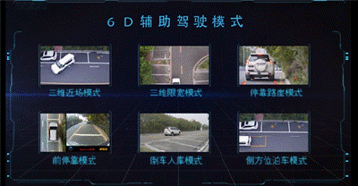 道可視6D輔助駕駛模式(三維近場模式、三維限寬模式、停靠路崖模式、前停靠模式、倒車入庫模式、側方位泊車模式),根據各種不同的行車環境,帶來相應的畫面呈現形式,便于駕駛者更直觀的查看到車外的行駛環境,從容面對各種狹窄、人多、障礙物等復雜路況。