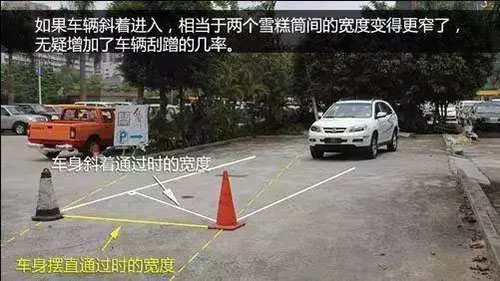 在通過窄道前,應保持慢速前進,不斷調整車的位置,盡量使得車身和窄道在一條直線上。