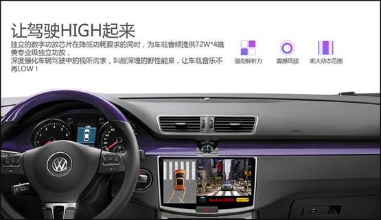 那么究竟是如何實現的呢?道可視4G車載影音導航系統內置獨立的數字功放芯片,在降低功耗要求的同時,為車載音頻提供72W*4媲美專業級獨立功放。