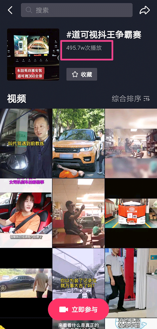 道可視更是一家年輕、具有生命力的企業,順應時代趨勢、時刻緊跟潮流,以“抖王”爭霸賽的活動切中了年輕用戶的心智,用一個品牌活動玩轉了不一樣的宣傳,以495.7W的播量刷新了行業新的記錄,在抖音上獲取更多的全新流量突破,極大地提高了品牌的美譽度和知名度。