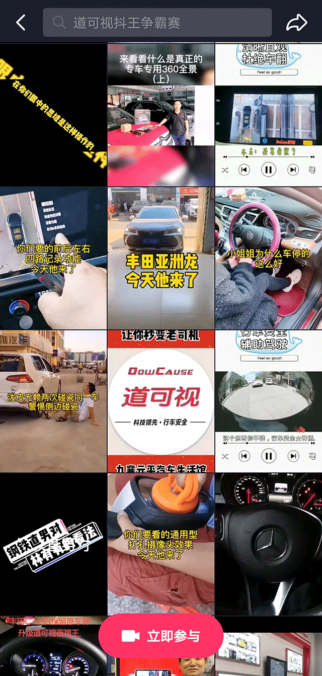 “抖王”爭霸賽是內容創新新玩法的先行者和探索者,道可視用簡單、直接的方式結合抖音的魔性平臺,成功引爆了這次精彩活動,在給用戶提供了娛樂體驗的同時,也讓品牌得到了高度曝光,引發大家對于行車安全的關注。