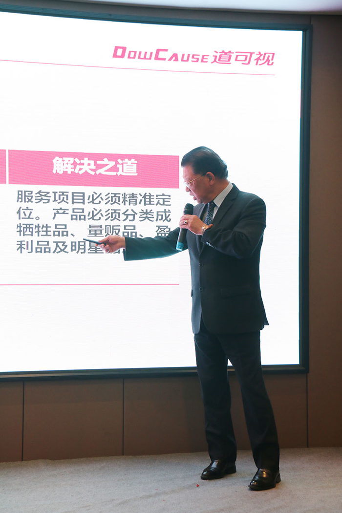 針對當下終端門店運營者所面臨的種種困惑,蔡老師也提出了解決之道,他指出門店有服務項目必須精準定位,產品必須分類成犧牲品、量販品、盈利及明星產品,同時,如果說門店有20%的員工劣根性很強,無論如何都無法改變,老板就必須使出殺手锏,不能再將這樣的員工留在店內等等。